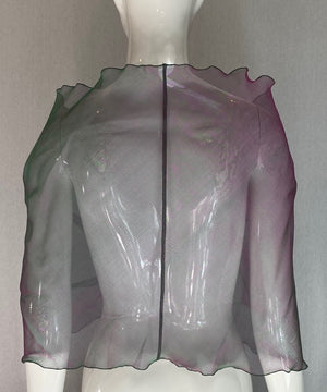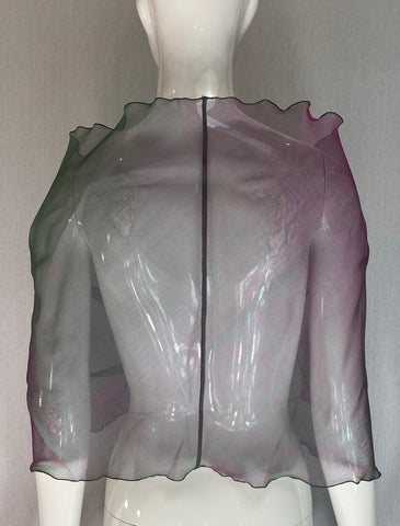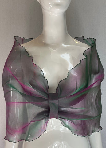 Sheer with shades of pink, green, lavender and purple