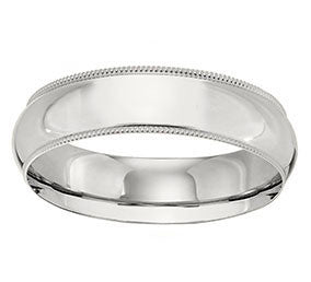 - 14K Yellow, Rose or White Gold Half Round Milgrain Band