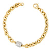 - 14k yellow gold oval link bracelet with white gold diamond rondelle