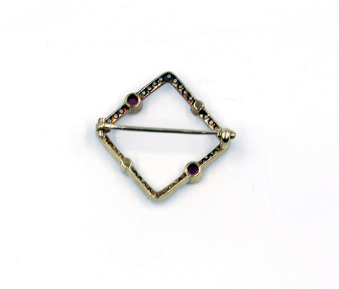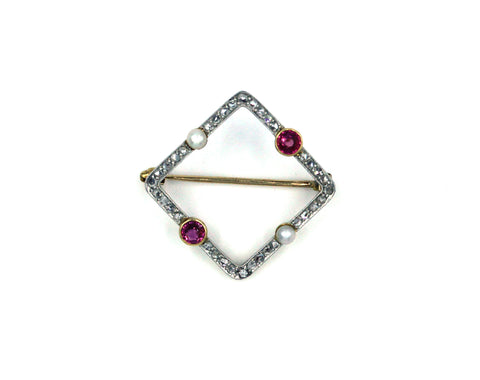 - Vintage pin with European old mine cut diamonds, cultured pearls and pink sapphires