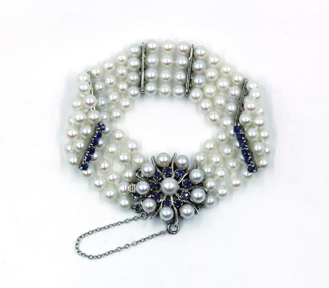 - Vintage akoya cultured pearl and blue sapphire bracelet